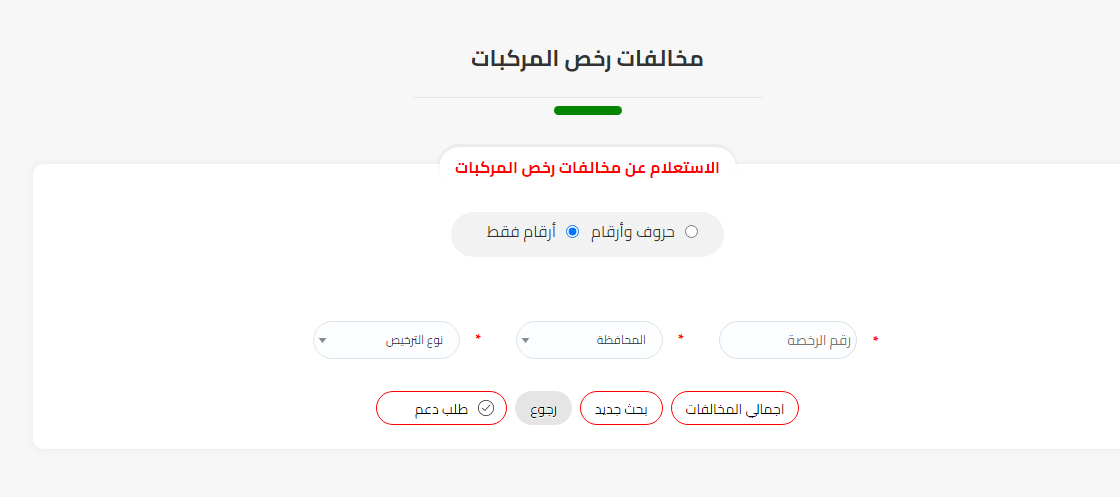 - كتابة رقم الرخصة "القيادة أو المركبة" حسب نوع المخالفة.