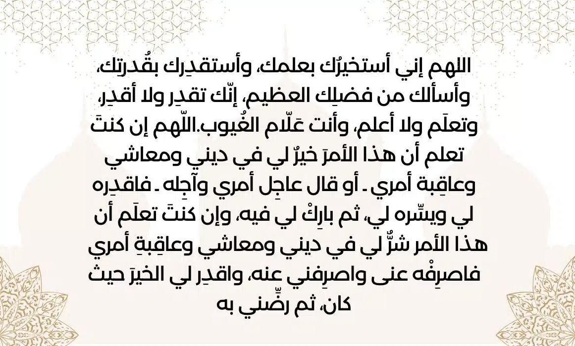 دعاء الاستخارة كامل والسورة التي تقرأ في صلاة الاستخارة