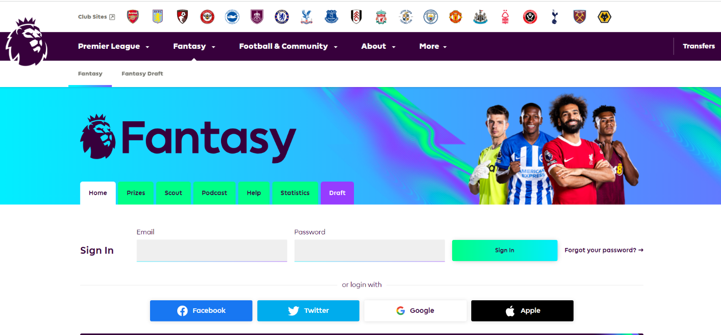 - قم بالتوجه إلى الموقع الرسمي الخاص بلعبة فانتازي الدوري الإنجليزي.