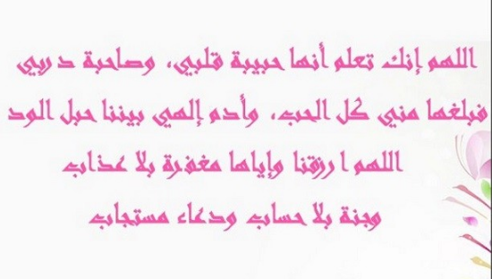 - أدعوك يا رب العالمين أن ترسم البهجة على وجه صاحبتي ورفيقة دربي وعزيزة قلبي وألا تريني فيها ما يبكيني.