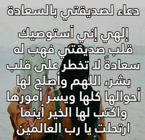 - ربي أدعوك أن تسعد قلب صاحبتي وأن تقر عينها لما ترجوه منك، كما أسألك أن تحفظها من كل شر يمكن أن يصيبها، فأنت خير الحافظين وأنت أرحم الراحمين.