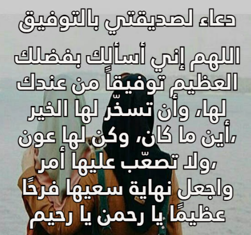 - ربي اغفر لصديقتي وارحمها، وابعد عنها الهموم والاحزان التي أثقلت قلبها، وأفرح قلبها وأرح بالها عاجلًا وليس آجلًا يا رب العالمين فإنك على كل شيء قدير.