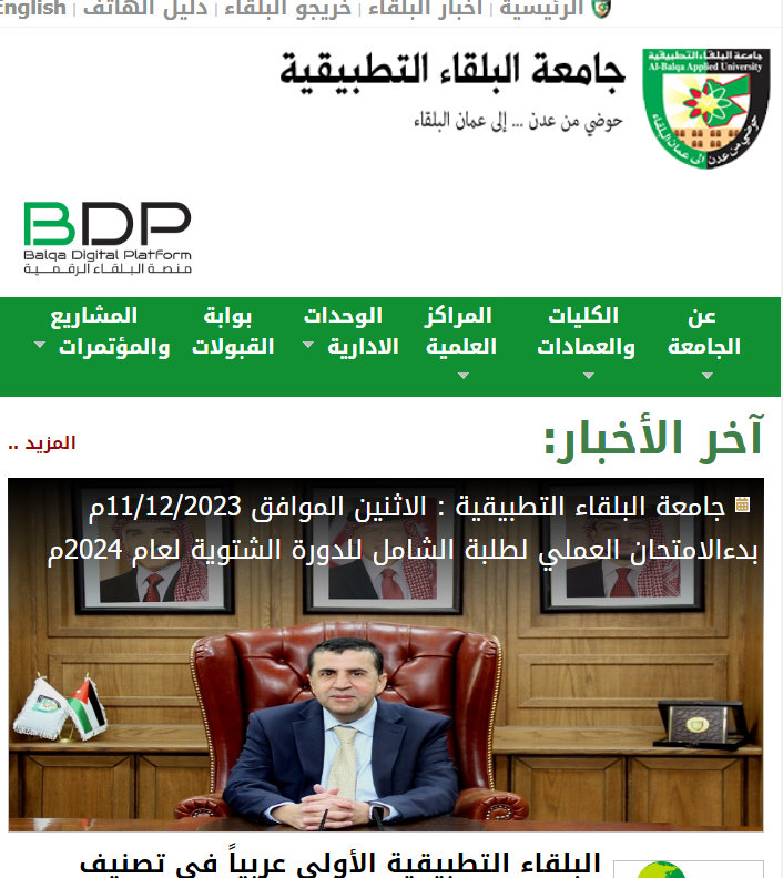 - الدخول إلى الموقع الرسمي الخاص بجامعة البلقاء في الأردن عبر الإنترنت