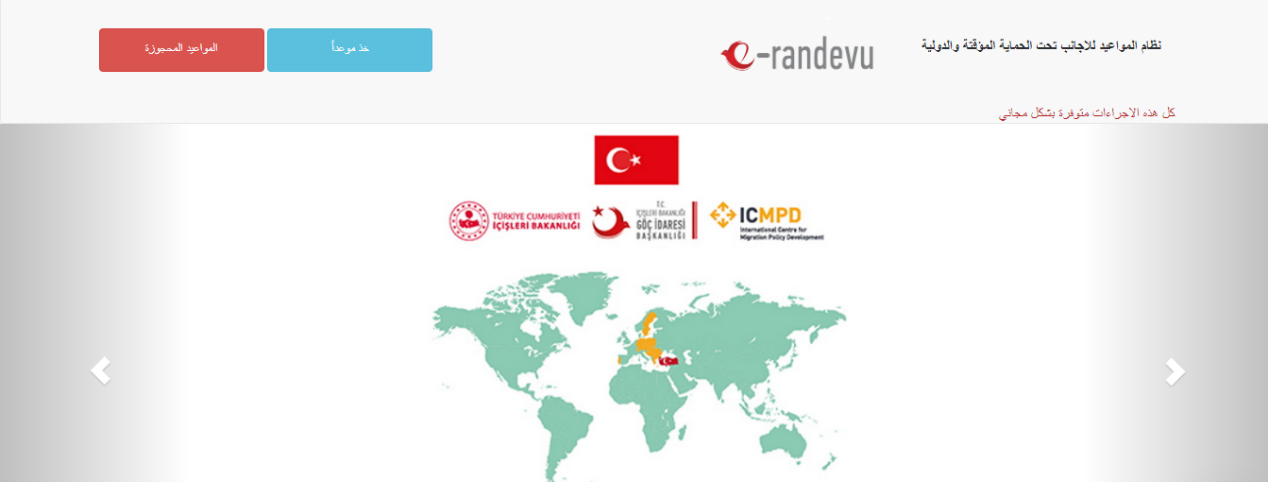 - اذهب إلى الموقع الرسمي نظام المواعيد للأجانب تحت الحماية المؤقتة والدولية.