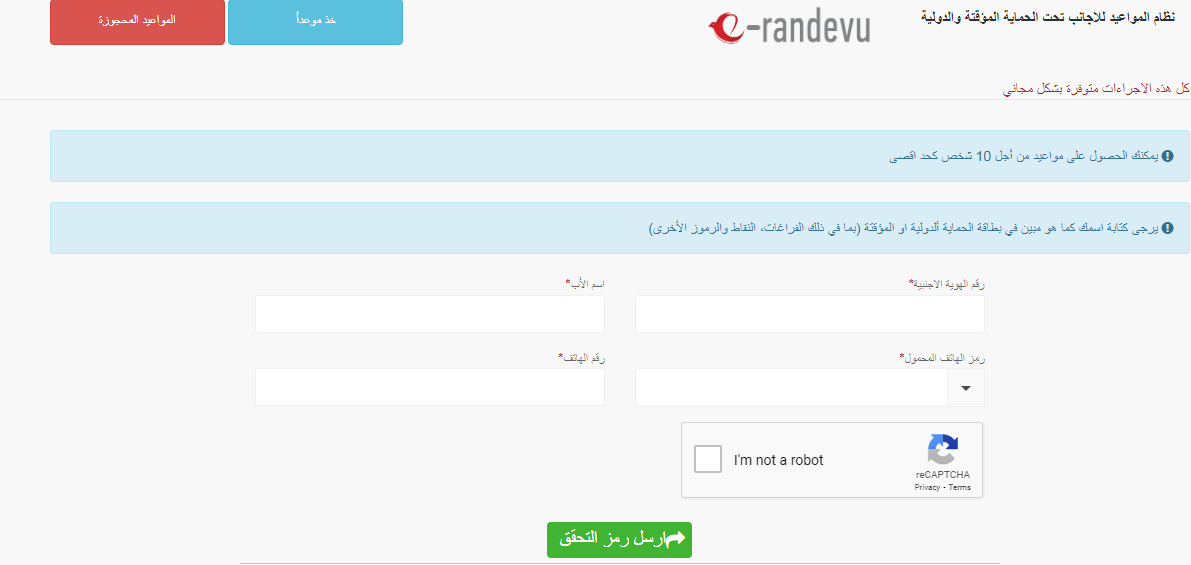 - ادخل إلى موقع نظام المواعيد للأجانب تحت الحماية المؤقتة والدولية.