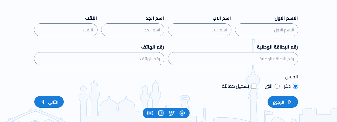 - قم بتعبئة البيانات المطلوبة من الاسم رقم البطاقة الوطنية وتحديد الجنس ورقم الهاتف الجوال.