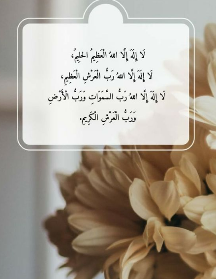 - لا إِلَهَ إِلَّا اللَّهُ الْكَرِيمُ الْحَلِيمُ، سُبْحَانَهُ وَتَبَارَكَ اللَّهُ رَبُّ الْعَرْشِ الْعَظِيمِ، وَالْحَمْدُ لِلَّهِ رَبِّ الْعَالَمِينَ.