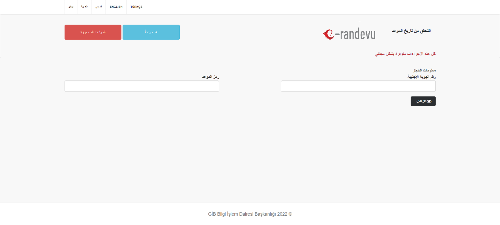 - عليك بتعبئة معلومات الحجز المطلوبة منك مثل: رقم الهوية الأجنبية، رمز الموعد.