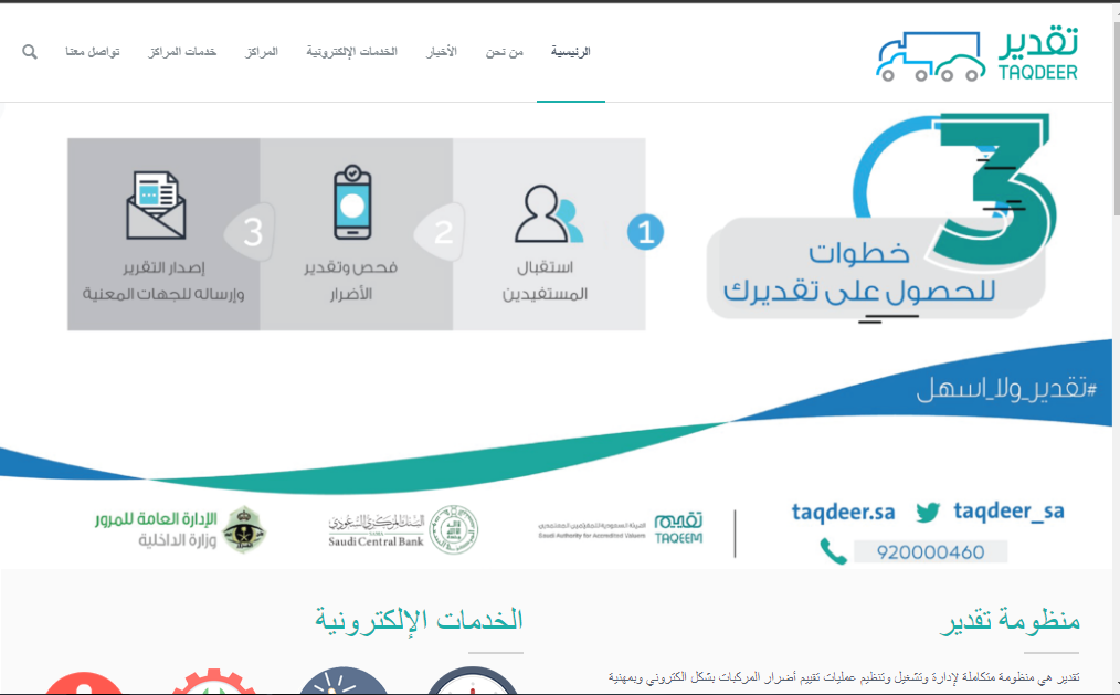 قامت منظومة تقدير بإتاحة الكثير من الخدمات الإلكترونية للمستفيدين التي من بينها حجز تقييم من أجل أضرار المركبة، ويتم ذلك من خلال اتباع الخطوات الآتية: