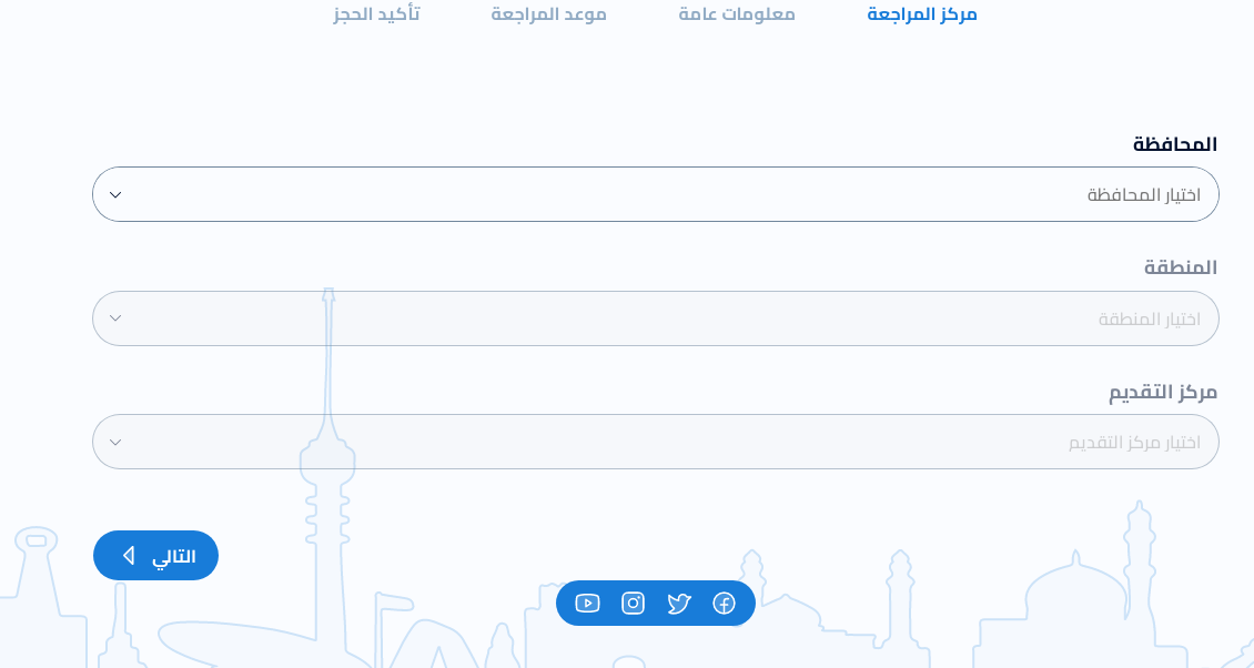 - قم بتعبئة بيانات مركز المراجعة المحافظة، والمنطقة، ومركز التقديم.