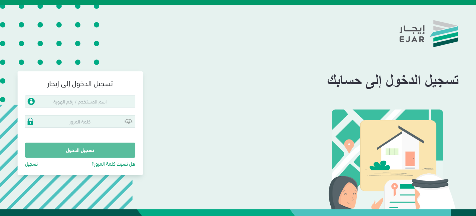 - قم بتسجيل الدخول إلى منصة إيجار باستخدام بيانات الدخول الخاصة بك.