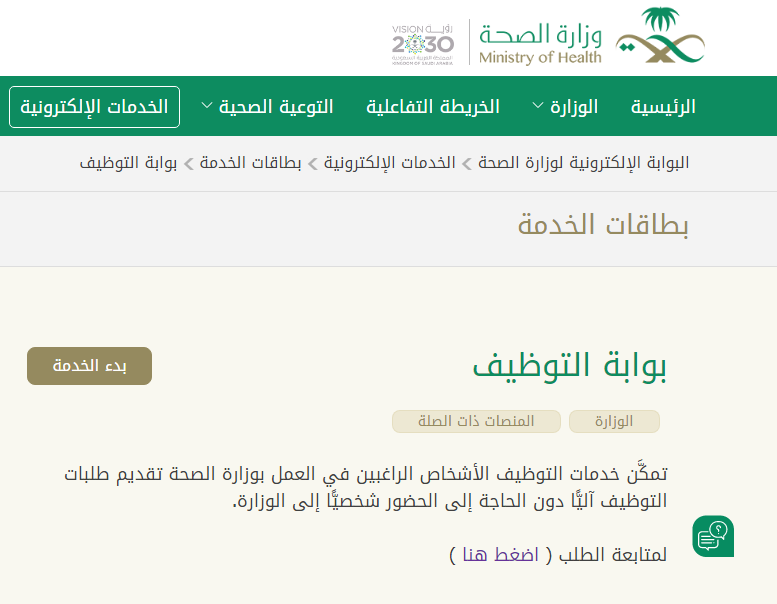 - التقديم على وظائف وزارة الصحة إلكترونيًا عبر بوابة التوظيف.