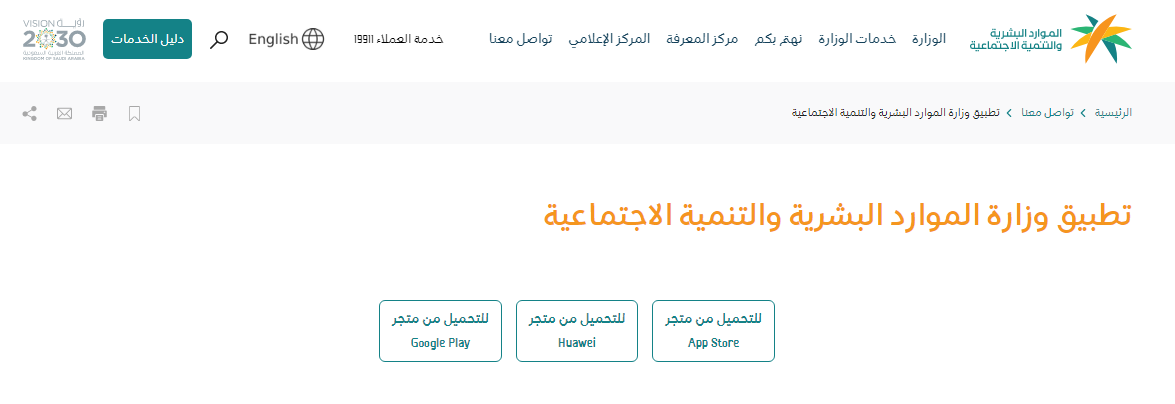 - تحميل التطبيق الخاص بوزارة الموارد البشرية والتنمية الاجتماعية من خلال اختيار النسخة المناسبة لنوع الهاتف من النسخ التي تم عرضها.