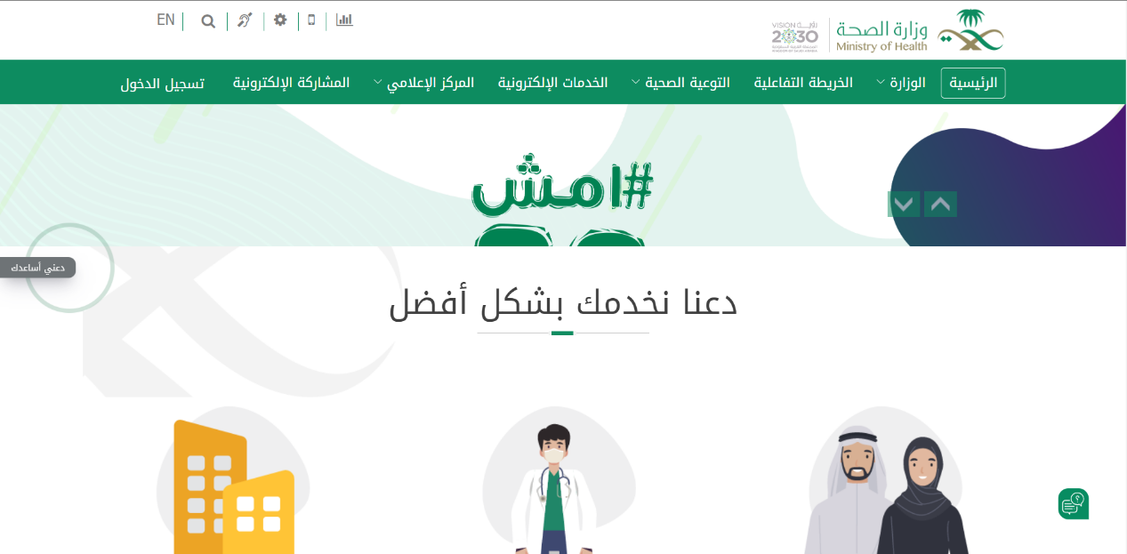 - الولوج إلى الموقع الرسمي لوزارة الصحة السعودية.