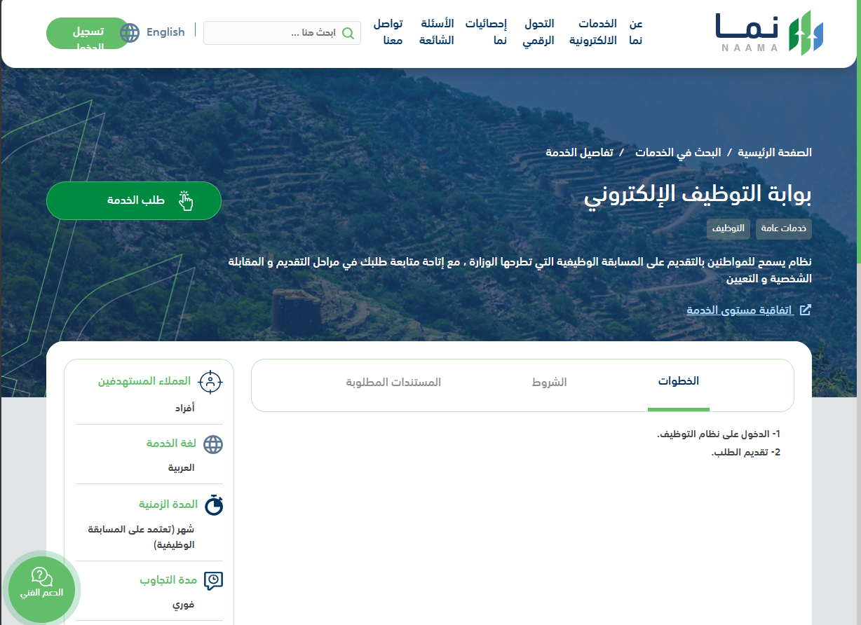 - الوصول إلى بوابة التوظيف الإلكتروني.