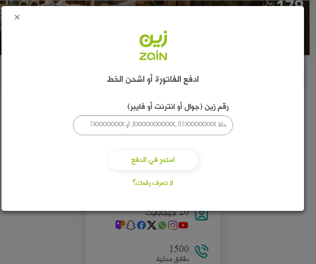 - كتابة رقم شحن رصيد زين السعودية 1717.
