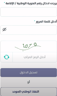- يتوجب عليك تسجيل الدخول إلى المنصة بكتابة رقم الهوية الوطنية وكلمة المرور.