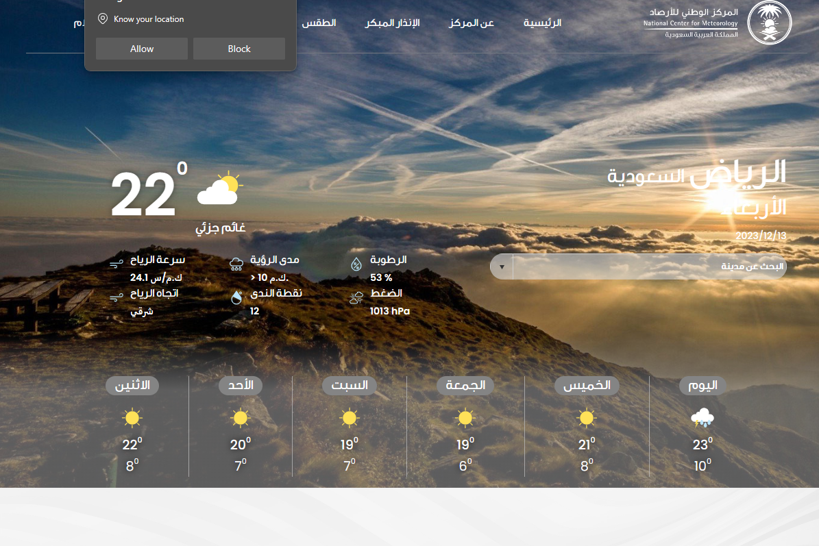 - الدخول إلى الموقع الرسمي لمركز الأرصاد السعودية.
