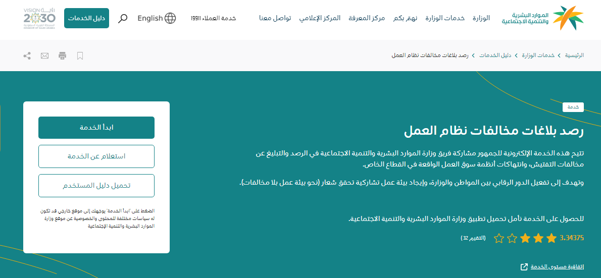 - الدخول إلى خدمة رصد بلاغات مخالفات نظام العمل "من هنا".
