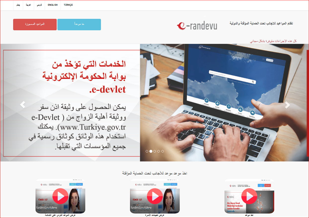 - قم بالذهاب إلى موقع نظام المواعيد للأجانب تحت الحماية المؤقتة والدولية.