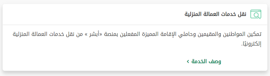 طرحت وزارة الداخلية في المملكة العربية السعودية متمثلة في المديرية العامة للجوازات خدمة رقمية يمكن من خلالها نقل كفالة سائق أو عمالة منزلية بشكل عام من كفيل إلى آخر، وذلك عبر خدمة نقل خدمات العمالة عن طريق منصة أبشر الإلكترونية.