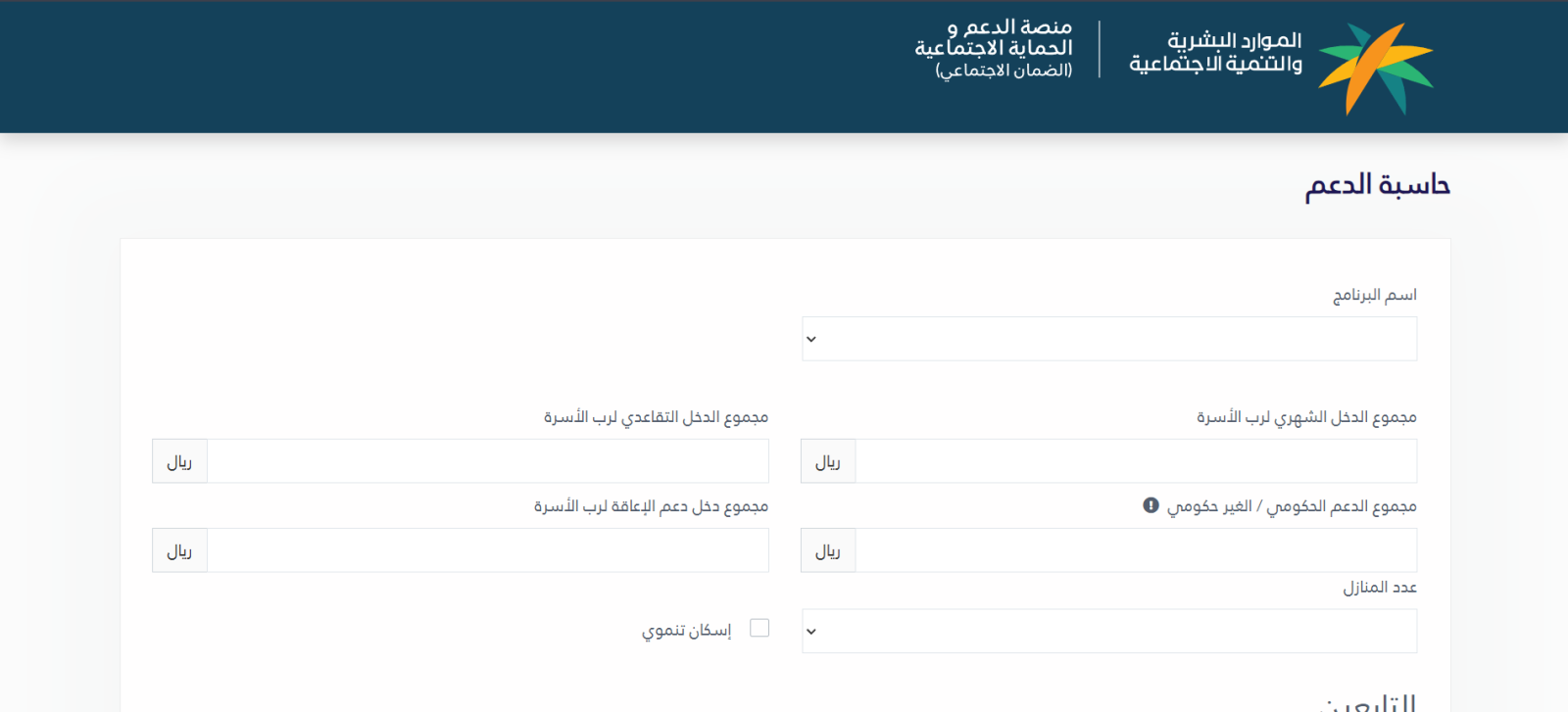 - يبدأ المواطن بالدخول إلى الموقع الرسمي لحاسبة الضمان الاجتماعي.