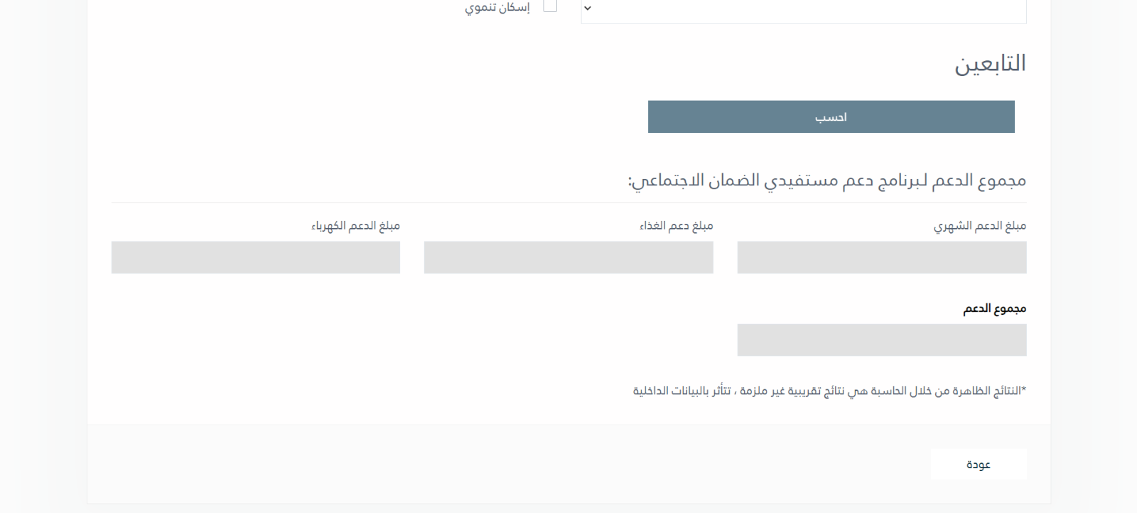 - بعد تدوين البيانات بشكل صحيح، يتعين على المستخدم النقر على زر "احسب".