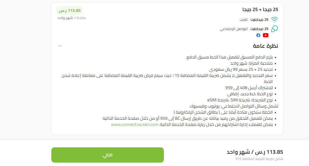 - حدد الباقة التي يريد العميل في تنشيطها من خلال الباقات المتاحة على الموقع.