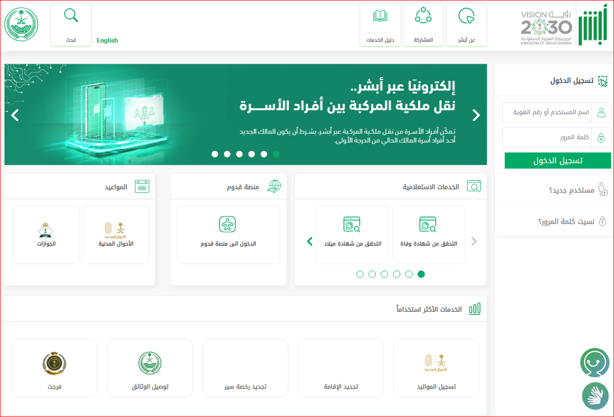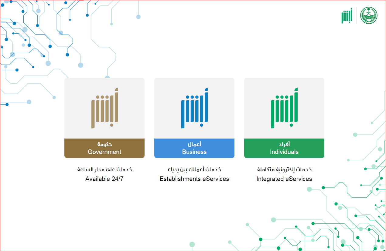 - قم بالدخول إلى منصة أبشر الإلكترونية.
