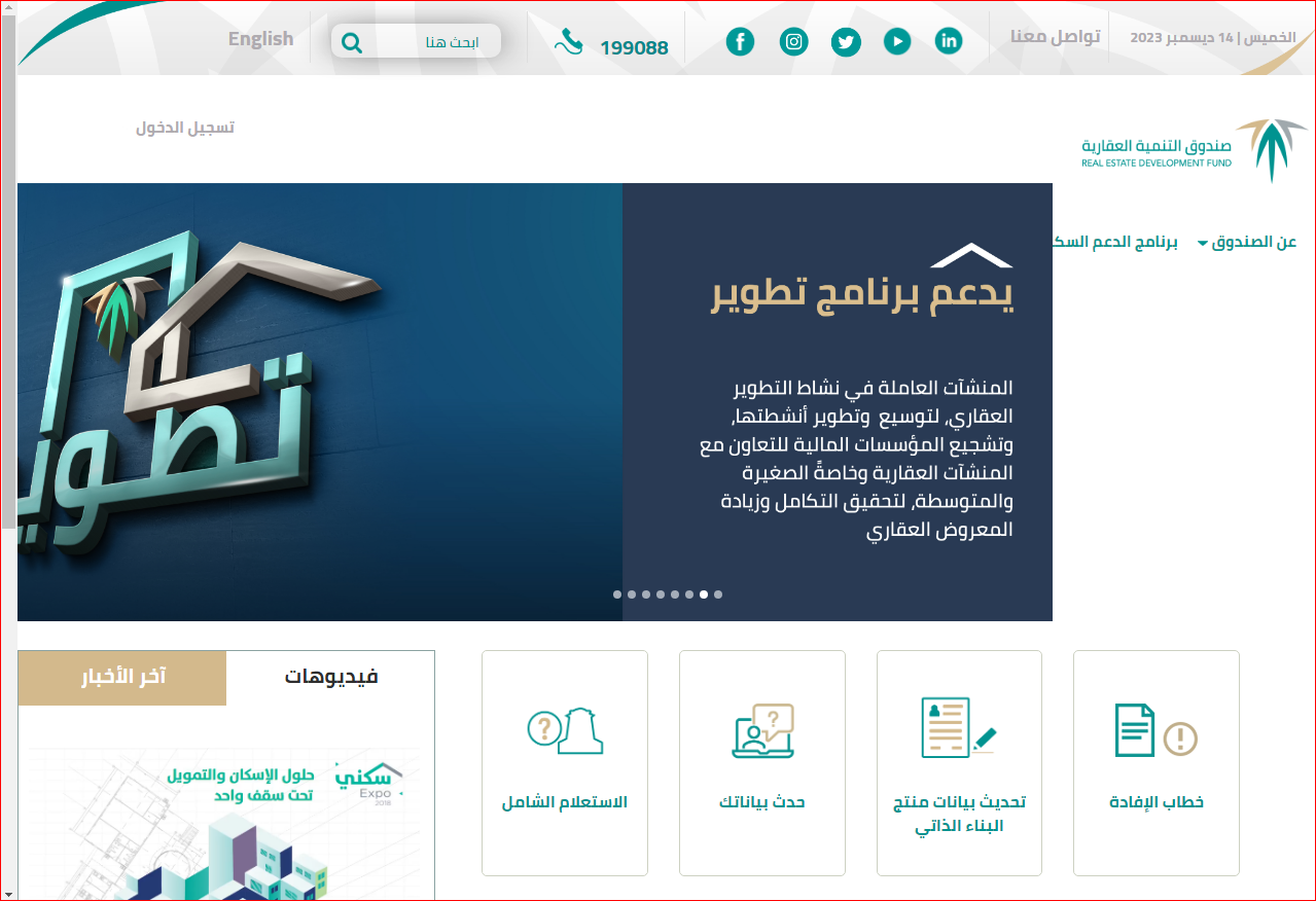 - قم بالدخول إلى الموقع الرسمي لصندوق التنمية العقارية.