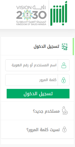- تسجيل الدخول من خلال كتابة اسم المستخدم ورقم الهوية الوطنية.