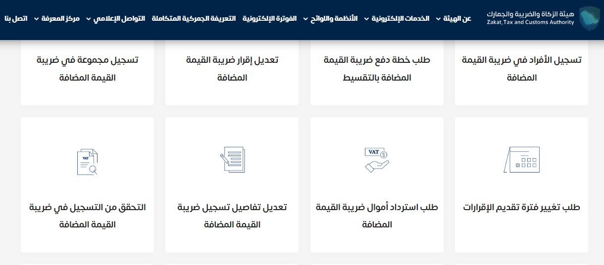 إن هيئة الزكاة والضريبة والجمارك واحدة من ضمن الهيئات التي تقدم خدماتها بشكل إلكتروني عبر المنصة الخاصة بها، ومن ضمن أكثر الخدمات التي يتم استخدامها آليات الاستعلام، وذلك لأنها توفر وقت وجهد المستفيد في معرفة بعض المعلومات، ومن ضمنها التحقق من ضريبة القيمة المضافة، ويمكن استخدامها عبر الضغط على رابط الاستعلام عن الرقم الضريبي للأفراد.