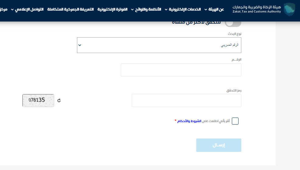 إن موقع هيئة الزكاة والضريبة والجمارك يقدم خدمة الاستعلام عن قيمة الضريبة المضافة إلكترونيًا، حيث إن يمكن استخدام الخدمة بكل سهولة عن طريق تطبيق خطوات التحقق من الرقم الضريبي هيئة الزكاة برقم الهوية: