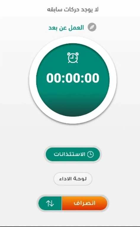 - سوف يتم فتح النافذة الرئيسية التي يمكن من خلالها تسجيل الحضور أو الانصراف.