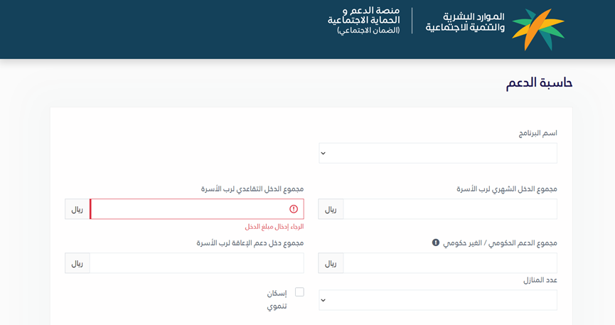 - إدخال مجموع دخل دعم الإعاقة لرب الأسرة.
