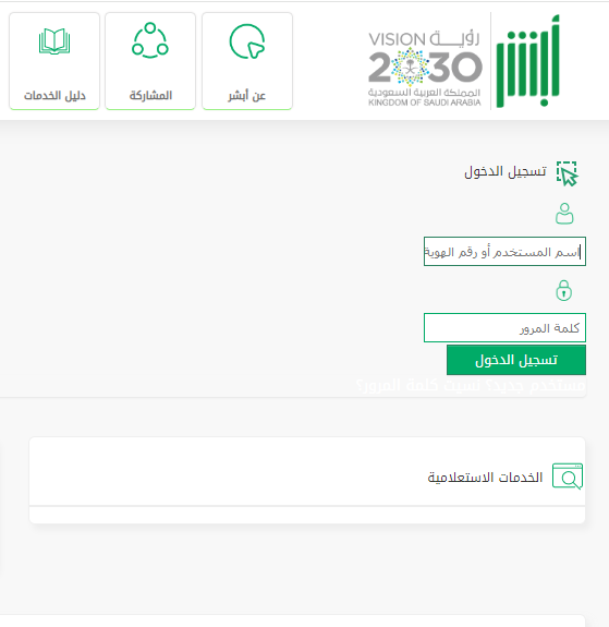 - الولوج إلى الموقع الإلكتروني لمنصة أبشر.