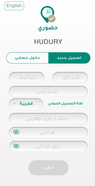 يتم استخدام تطبيق حضوري من أجل تسجيل الحضور والانصراف من العمل، ومن أجل الاستفادة من هذا التطبيق يجب أن تقوم بالتسجيل في التطبيق كمستخدم جديد وذلك من خلال الخطوات التالية: