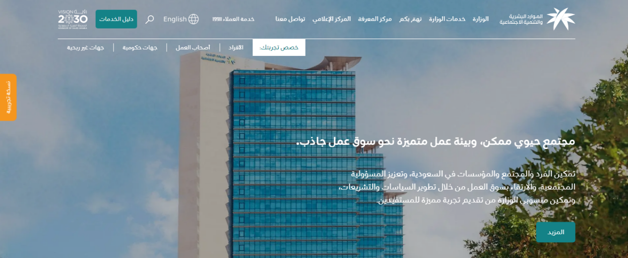 - يتم الذهاب إلى موقع وزارة الموارد البشرية والتنمية الاجتماعية.