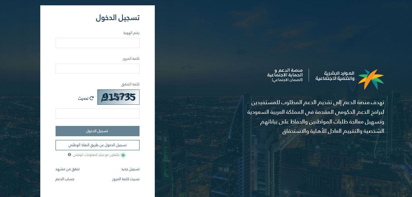 - تسجيل الدخول من خلال النفاذ الوطني الموحد.