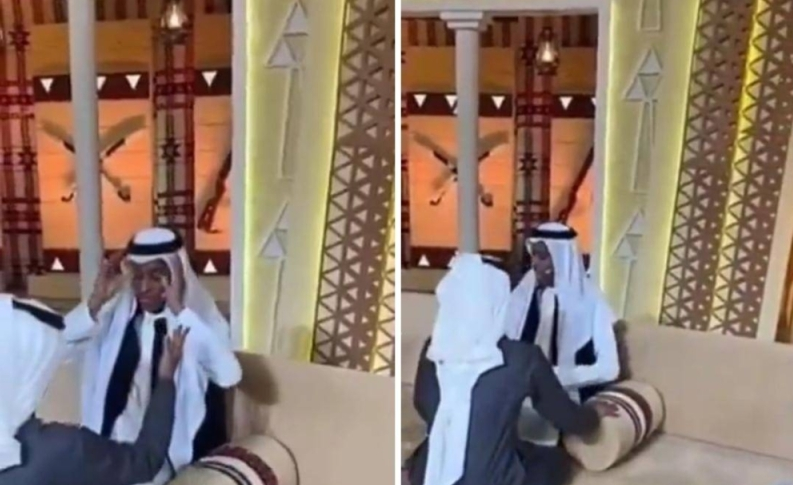 انتشر مقطع فيديو لمشهور التيك توك وهو قعيد في مجلس الصياهد مع سكرتيره في إحدى حلقات البرنامج.