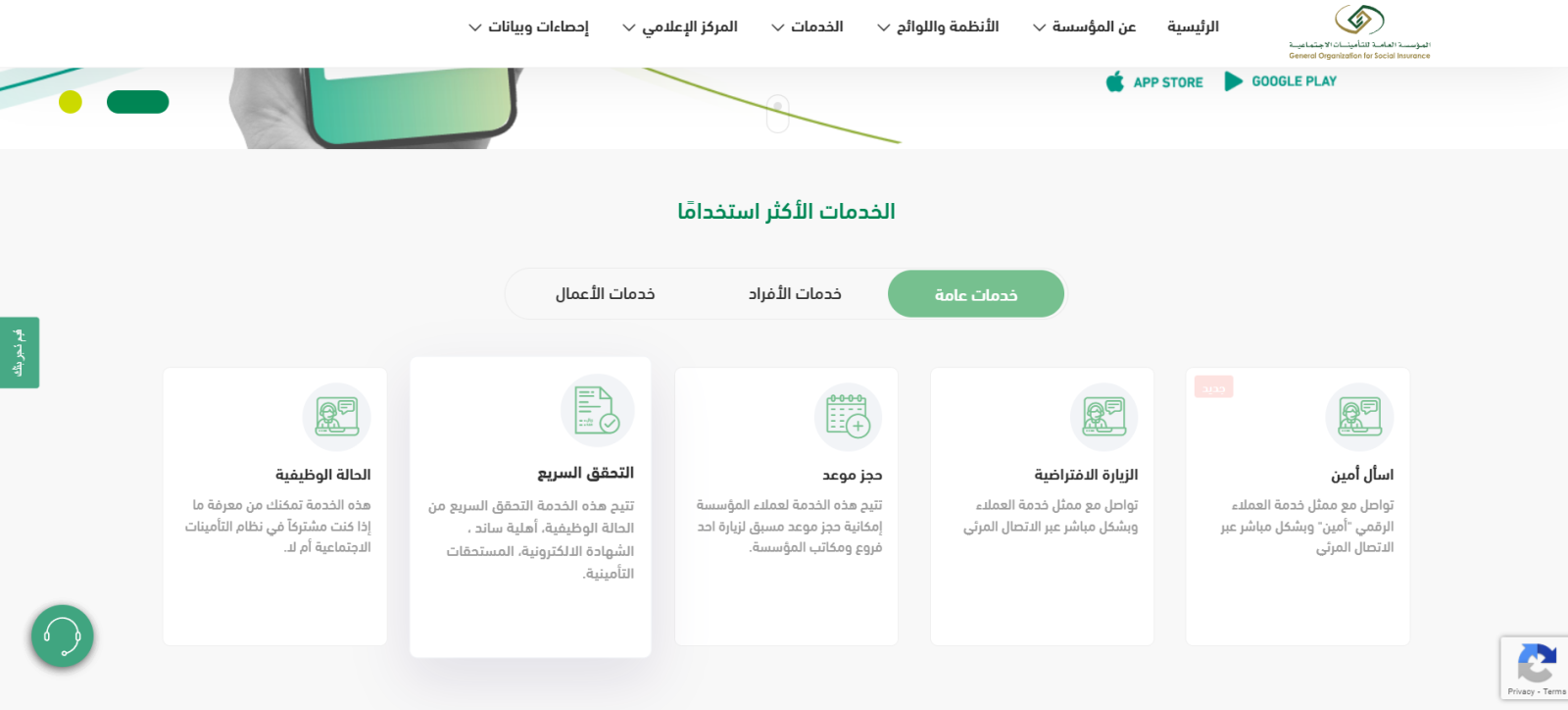- يبدأ الأمر بالولوج إلى الموقع الرسمي للمؤسسة العامة للتأمينات الاجتماعية.