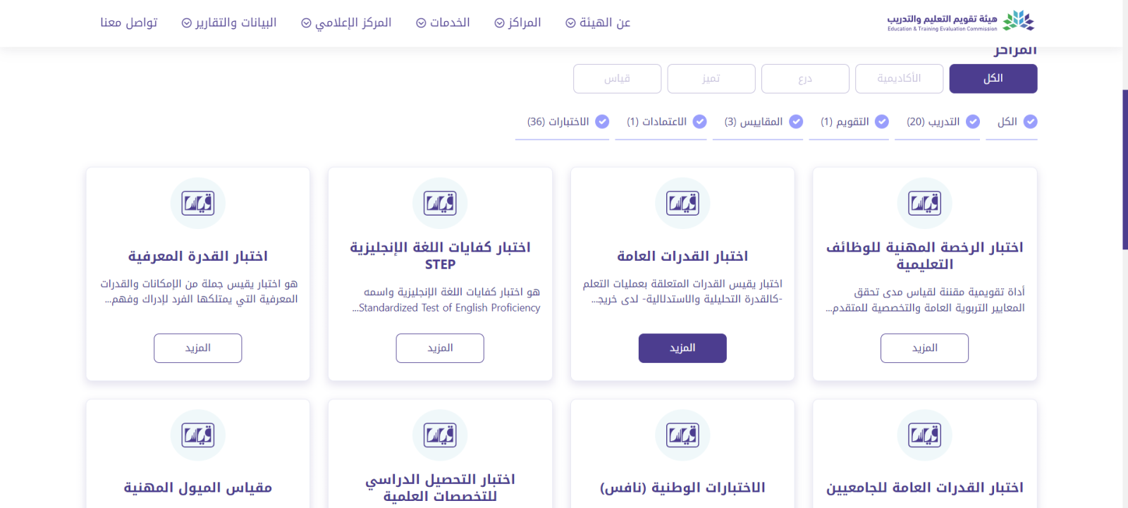 - اختر "اختبار القدرات العامة" كما في الصورة أدناه.