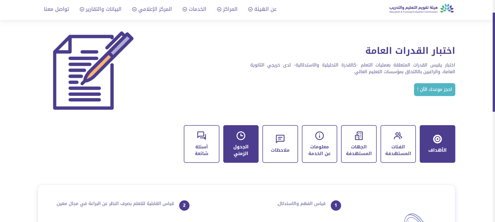 - اطلع على جدول المواعيد الزمنية الخاص بالاختبار لمعرفة كافة المواعيد المتاحة للقيام بالاختبار.