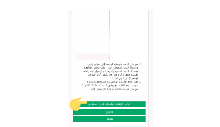 - اضغط توصيل الوثيقة بواسطة البريد السعودي.