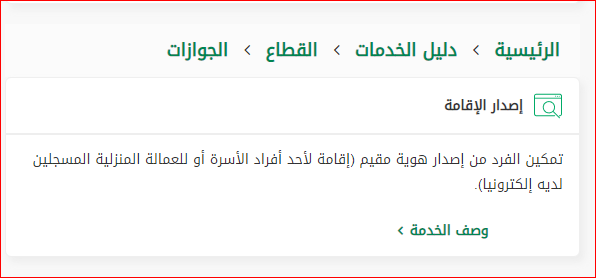 - إقامة دائمة للفرد الوافد داخل المملكة.