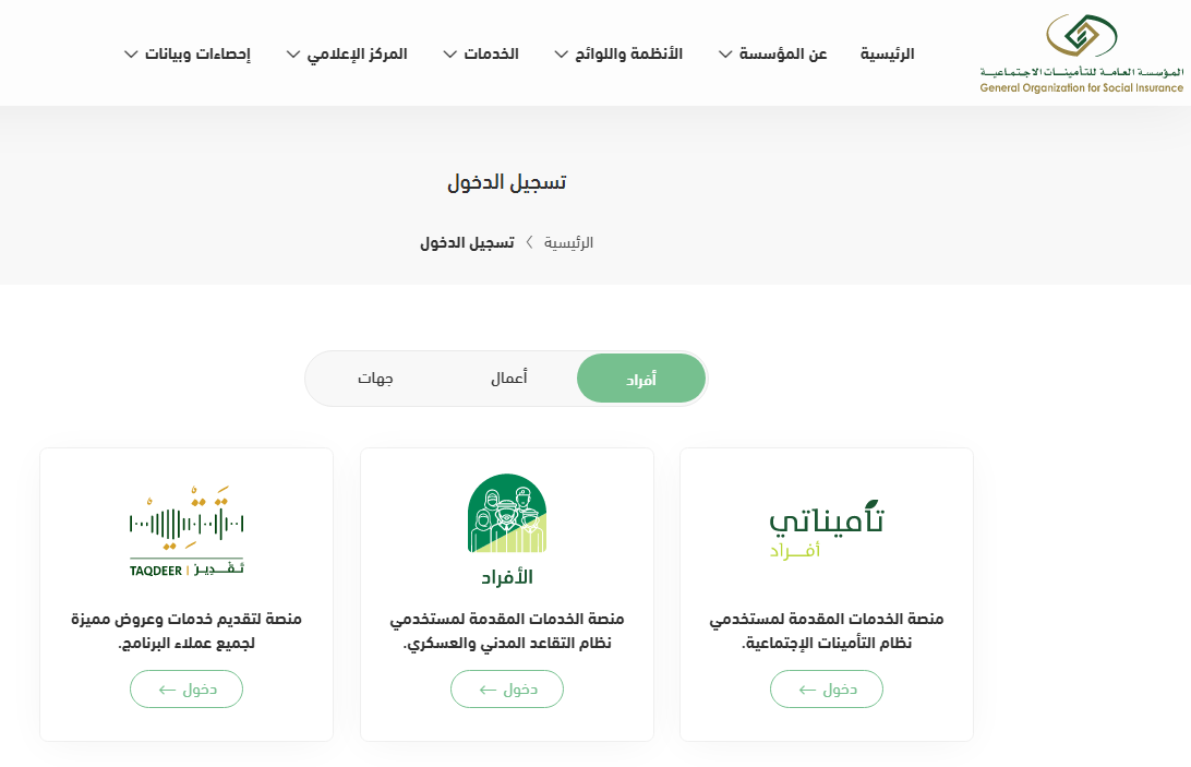 - يجب تقديم طلب في منصة التأمينات الاجتماعية من أجل الإفصاح عن كافة البيانات المطلوبة.