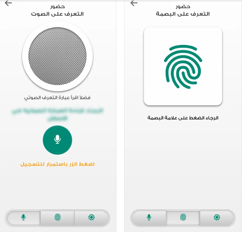 - عليك اختيار الطريقة التي ترغب في تسجيل الحضور والانصراف بها وهي إما عن طريق البصمة أو عن طريق التسجيل الصوتي.