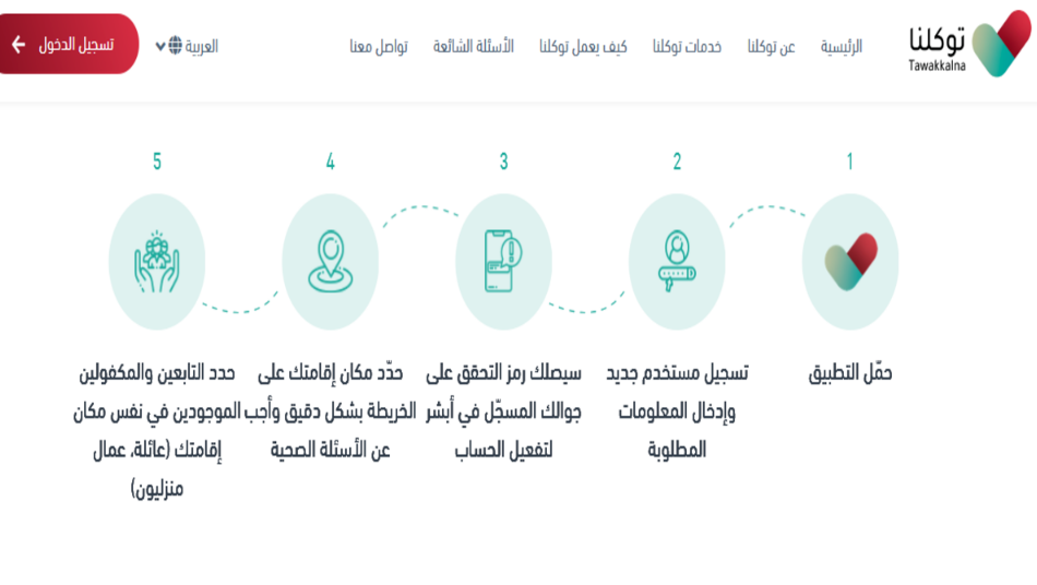 - الذهاب إلى موقع توكلنا الرسمي، أو تحميل التطبيق.