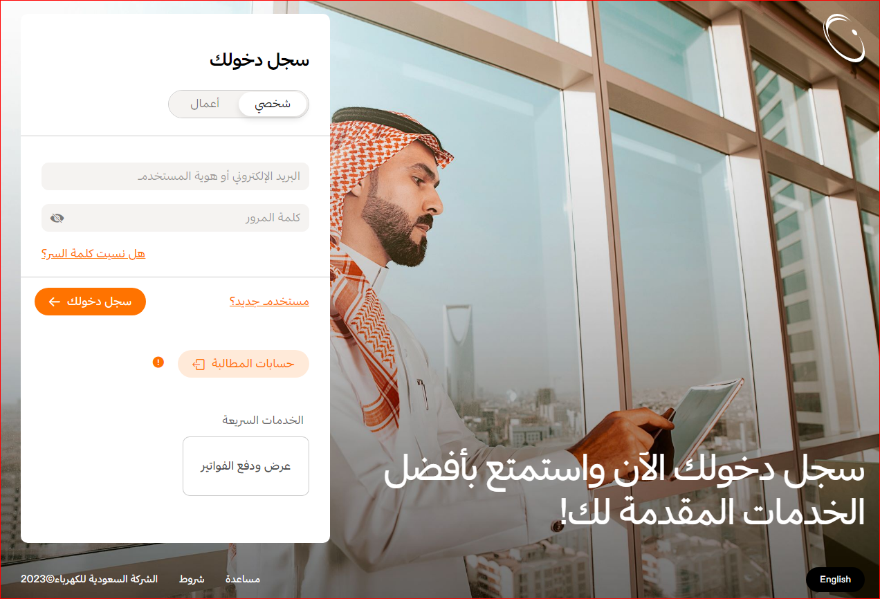 - قم بالدخول إلى الموقع الرسمي للشركة السعودية للكهرباء.