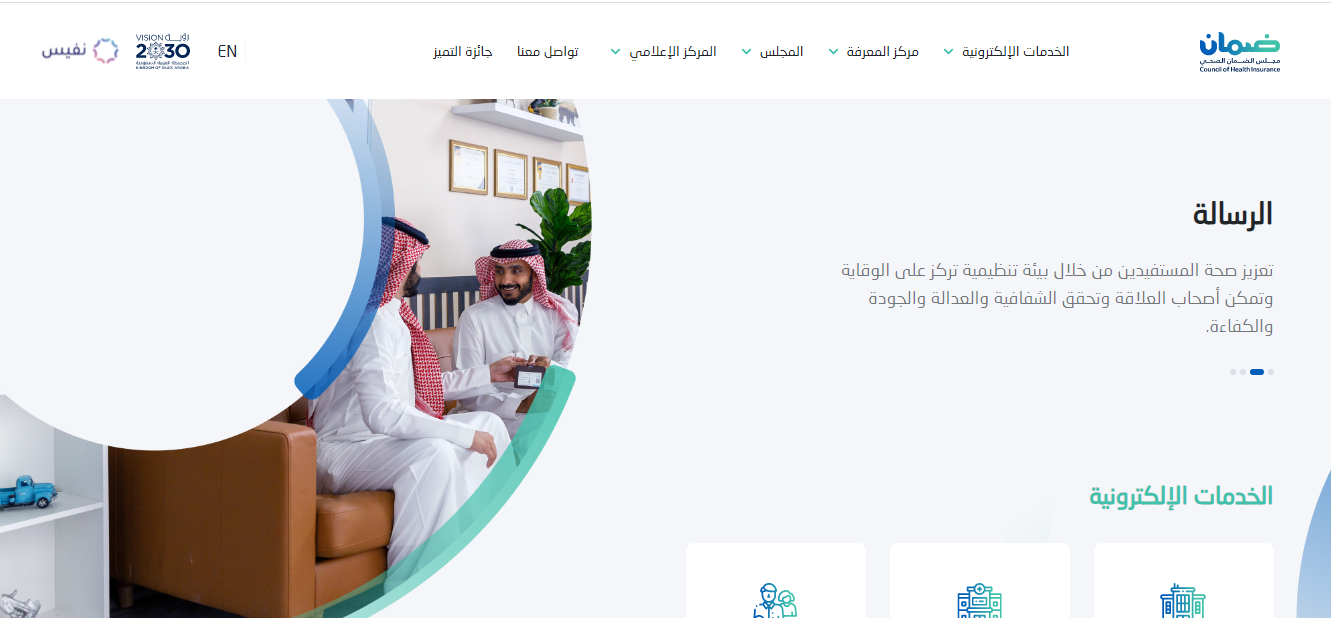 - قم بالتوجه إلى الموقع الرسمي الخاص بمجلس الضمان الصحي.